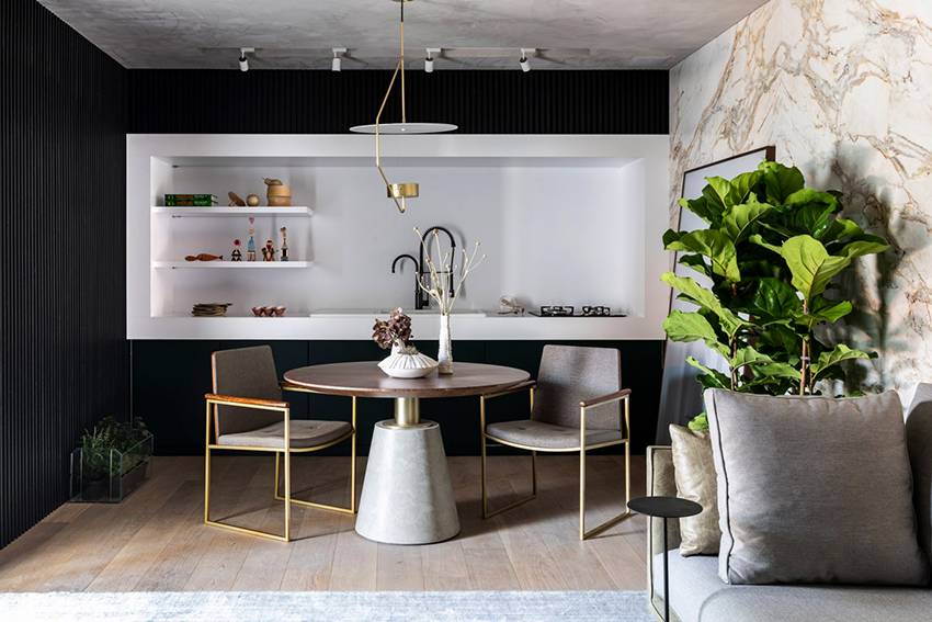 Не в каждой квартире найдется место, чтобы использовать его как столовую, но зачастую в этом и нет необходимости. Можно оформить обеденную зону на кухне, в гостиной или сделать единое пространство, которое объединяет все эти комнаты.