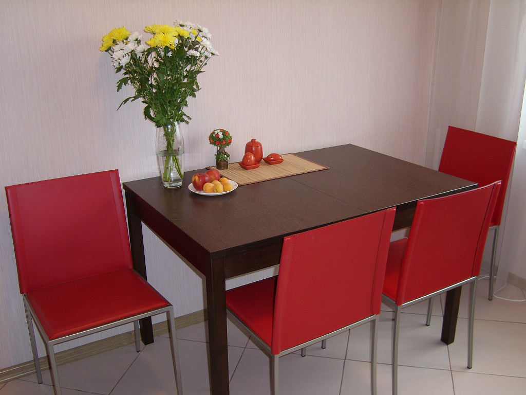 Красный стол – необычный выбор, свойственный творческим и динамичным натурам. Красный обеденный стол может стать настоящим украшением кухни и ее изюминкой, он отлично впишется в интерьеры в стиле минимализм, хай-тек и лофт. Такая модель может быть изготовлена из дерева, ДСП, стекла и пластика.