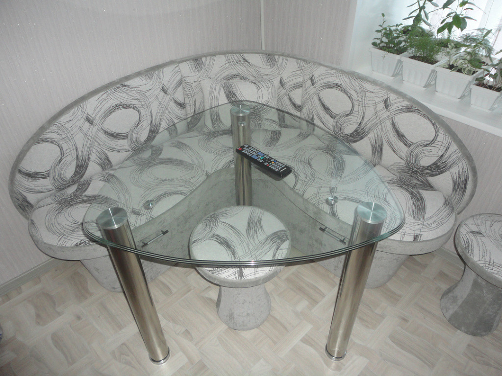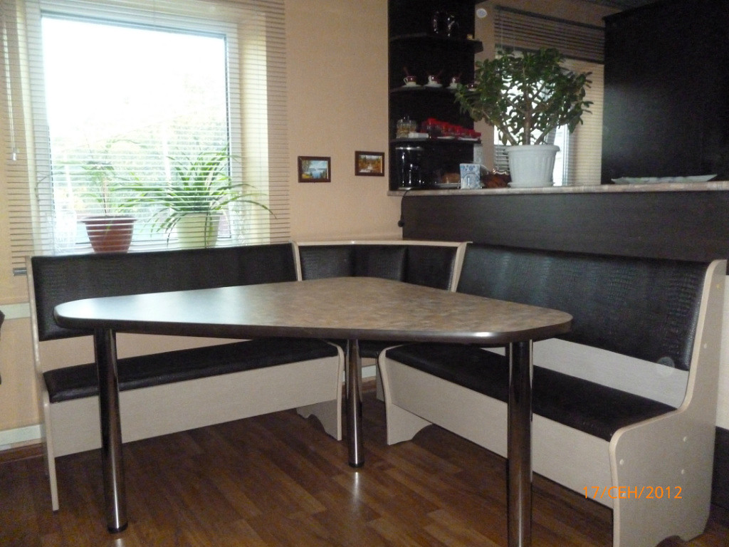 Треугольный стол – эта модель выглядит необычно и привлекательно. Даже если общий кухонный гарнитур довольно скромный, треугольный стол может добавить образу немного футуристического колорита и сделать интерьер более современным.