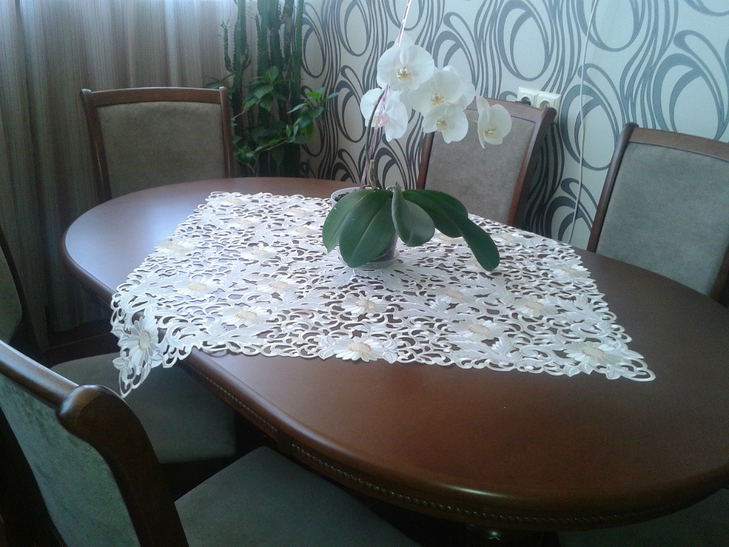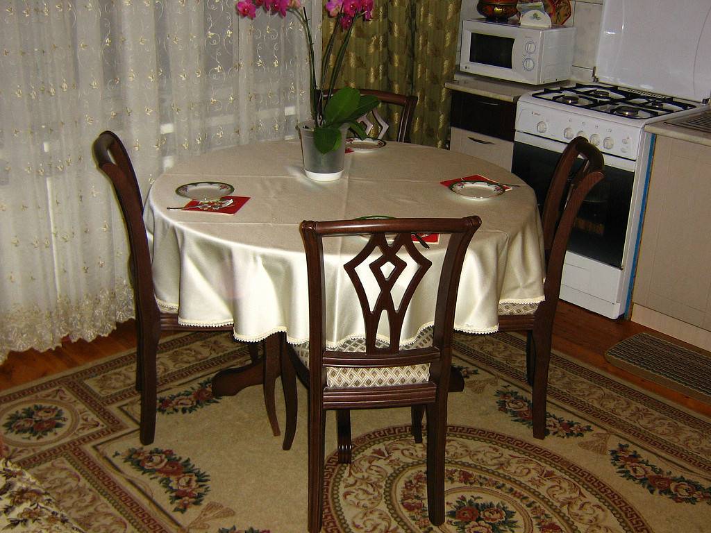 Подсказка! Наиболее удобным будет круглый стол, диаметр которого не превышает 1,5 метра, иначе всем сидящим будет неудобно дотягиваться до расставленных блюд.