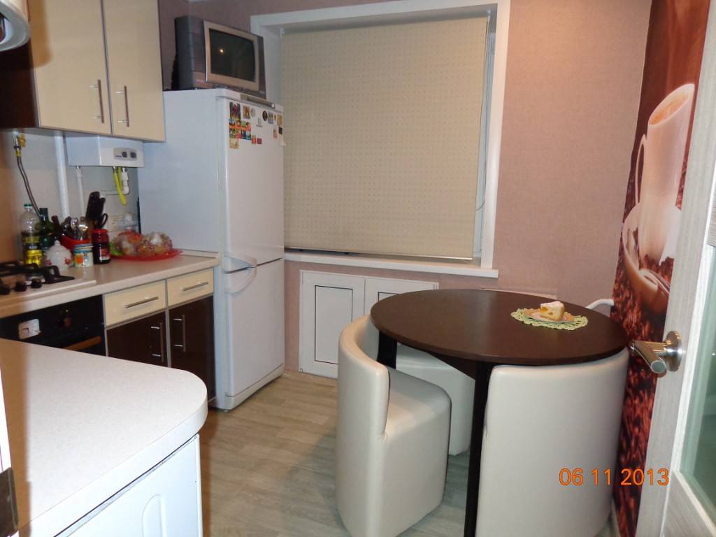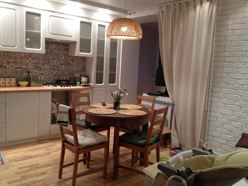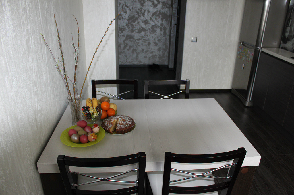Альтернативой ему является выдвижной столик, который более распространен в микрокухнях. Он выполнен в виде выдвигающейся из гарнитура разделочной дощечки. Он имеет довольно простое исполнение: у него отсутствуют ножки, саму дощечку нельзя полностью вытащить, а пользоваться ею одновременно смогут не более двух человек. Если ваша семья небольшая, но свободного места не всегда оказывается достаточно, то такая модель поможет вам в решении вашей проблемы.