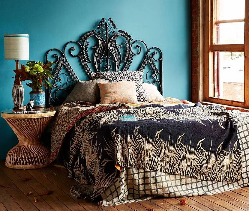 Яркий бирюзовый оттенок на стенах спальниИсточник italstroy.ru