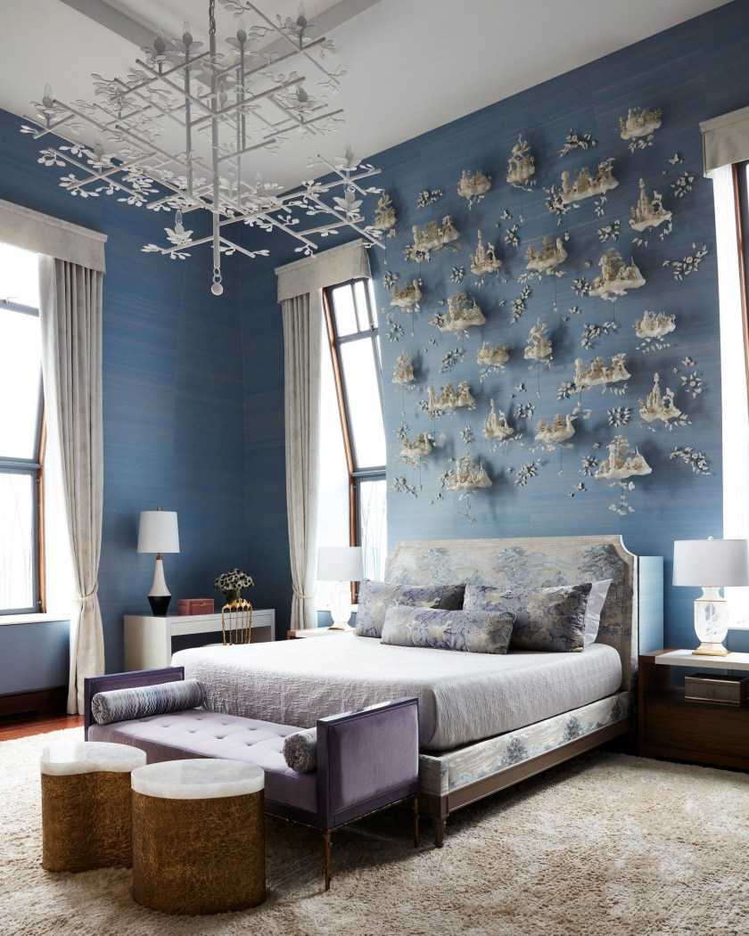 Чтобы разнообразить привычные интерьеры используются оригинальные оттенки с серебряным или золотым блеском. Такая отделка создает ощущение богатства и роскоши и впишется не в каждую спальню.