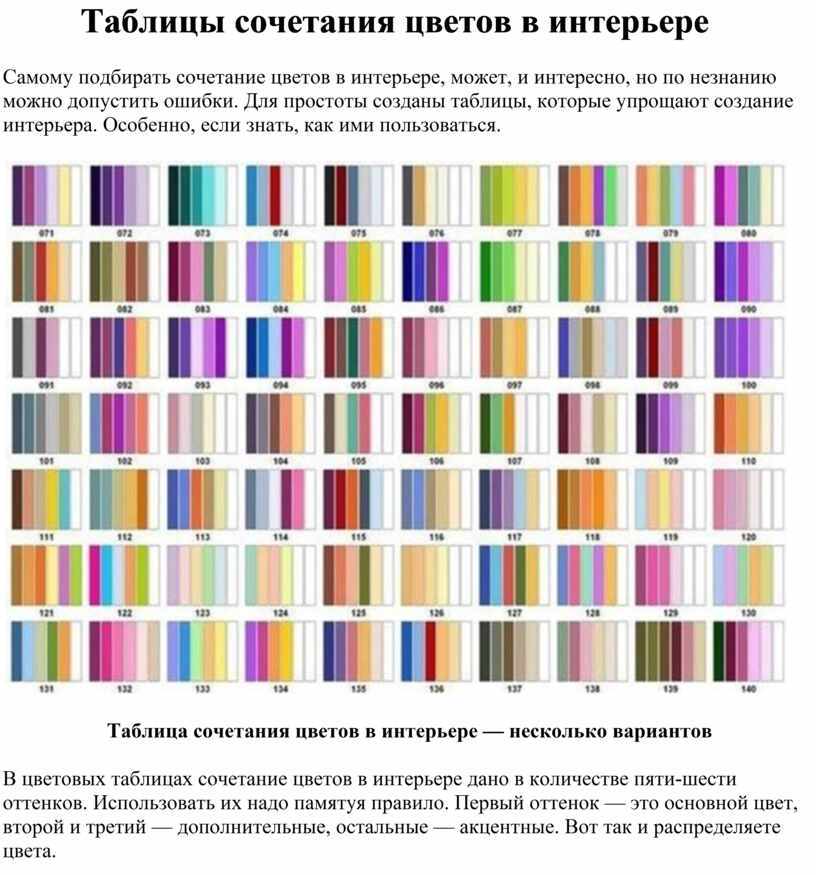 Проверить возможность комбинирования понравившихся цветов проще всего в соответствии со специальными таблицами сочетания оттенков.
