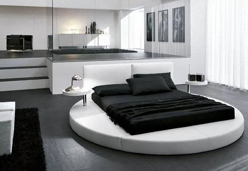 Гармония и сочетаемость – вот основные требования к оформлению крупных помещений. Ведущие оттенки в пространстве дополняют 1-2 вторичными колерами в декоре, аксессуарах. В комнате роскошно выглядит черно-белая гамма. Стены покрывают светлым тоном, детали, мебель – темным. Смягчить резкий переход между цветами в спальне поможет серый.