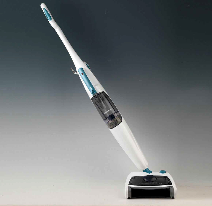 Еще одной популярной моделью, которая обеспечивает выполнение двух видов уборки, является паровая швабра Ariete Steam and Sweeper 2706. Она эффективно удаляет мелкий мусор, въевшиеся загрязнения с поверхности, выполняет полноценную дезинфекцию покрытий. Удобная швабра для мытья полов представлена складной конструкцией, что облегчает хранение прибора. Мощность устройства достигает 1,5 кВт. Объем контейнера для воды составляет 0,6 л.