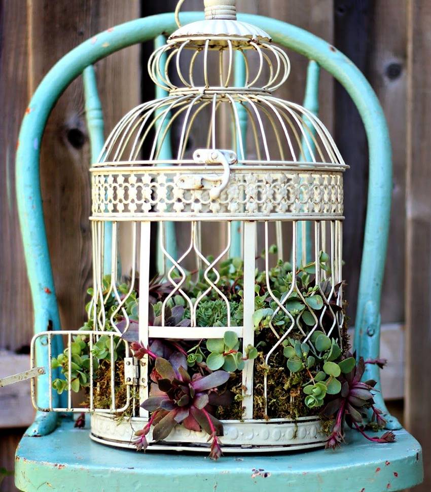 В старой ненужной клетке можно создать великолепную цветочную композицию