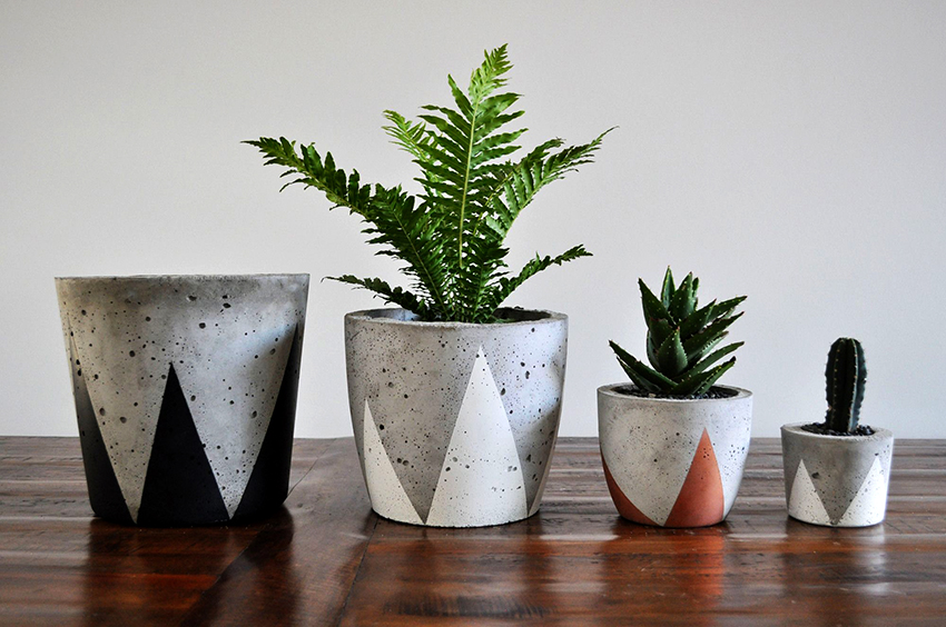 Из цементного раствора можно сделать эффектный напольный горшок