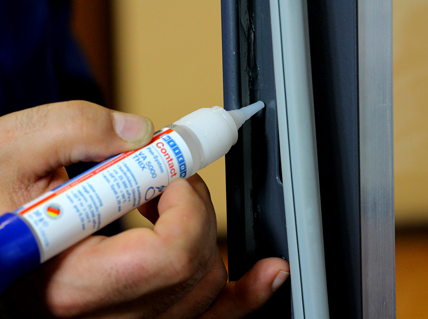 Излишние части клеевого раствора нужно сразу же протереть, либо воспользоваться для очистки ацетоном.
