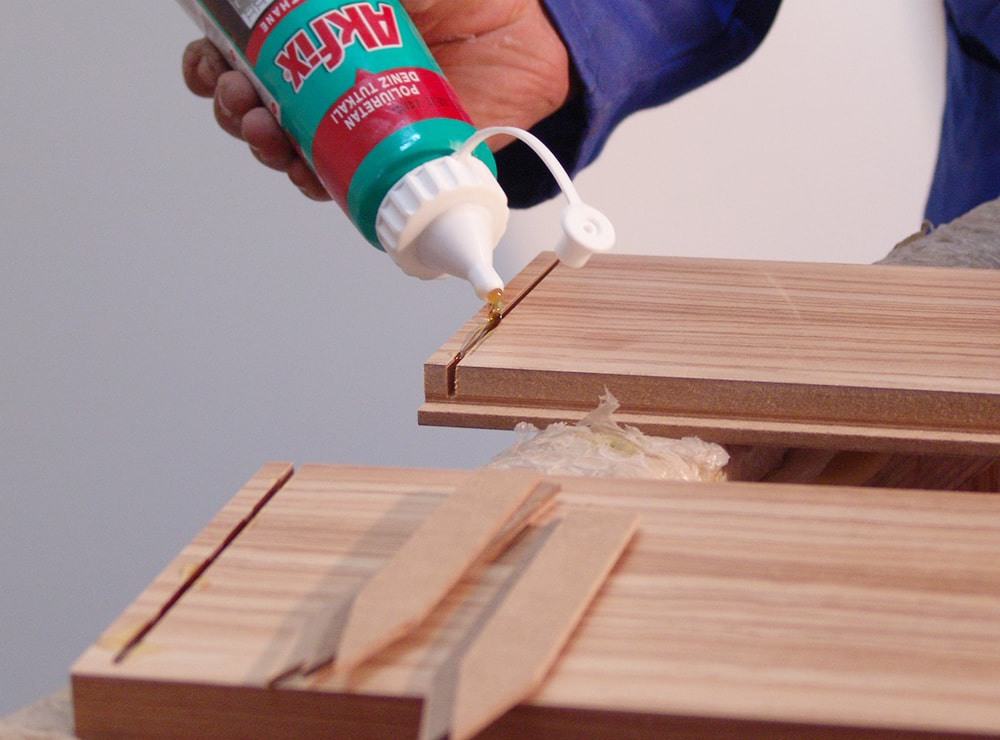 Работать с клеем лучше в перчатках, плотной одежде, защитных очках. А также рекомендуется пользоваться респиратором. Помещение должно хорошо проветриваться или быть обеспечено приточной вентиляцией. Чем убрать незатвердевший состав с кожи? Достаточно использовать мыло и воду.