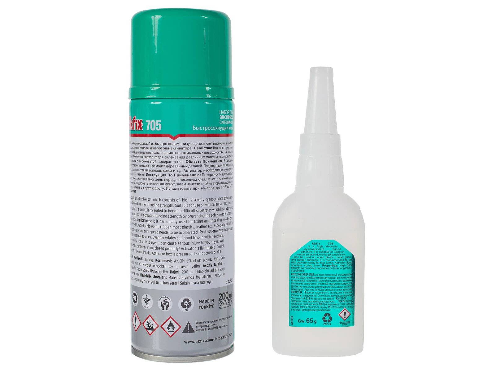 Клей на основе цианоакрилата впервые появился в 1958 году. Сейчас эфиры цианакриловой кислоты входят в состав многих средств, необходимых для проведения ремонта. Такие как Akfix 705 используют в строительстве, промышленности. Клей не содержит растворители, поэтому для склеивания нужно применять вязкий гель совместно с активатором, который наносится непосредственно на клеевое вещество. Схватывание происходит мгновенно. Происходит это в результате того, что компоненты активатора ускоряют процесс проведения химической реакции до 2-3 секунд. При этом качество геля не меняется: он остается прозрачным, прочным.