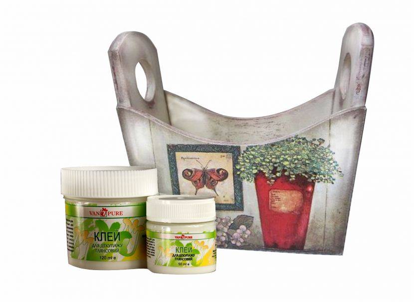 Если вы решили не использовать самодельный клей, а приобрести специализированную декупажную смесь, то стоит выделить среди ассортимента клей таких производителей, как: