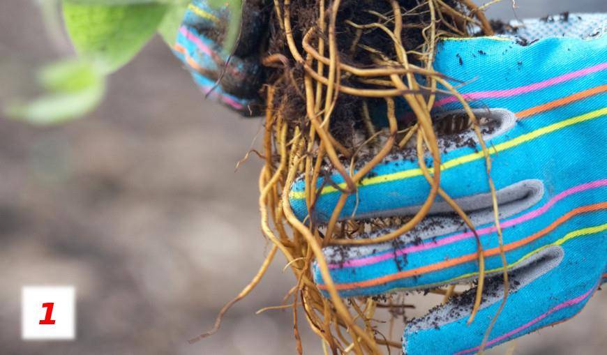 Перед посадкой саженец замачивают ненадолго в воде, потом осторожно распутывают корни руками, длинным гвоздем или спицей – это помогает растению быстрее укорениться (1). Посадка клематиса: распутывание корней