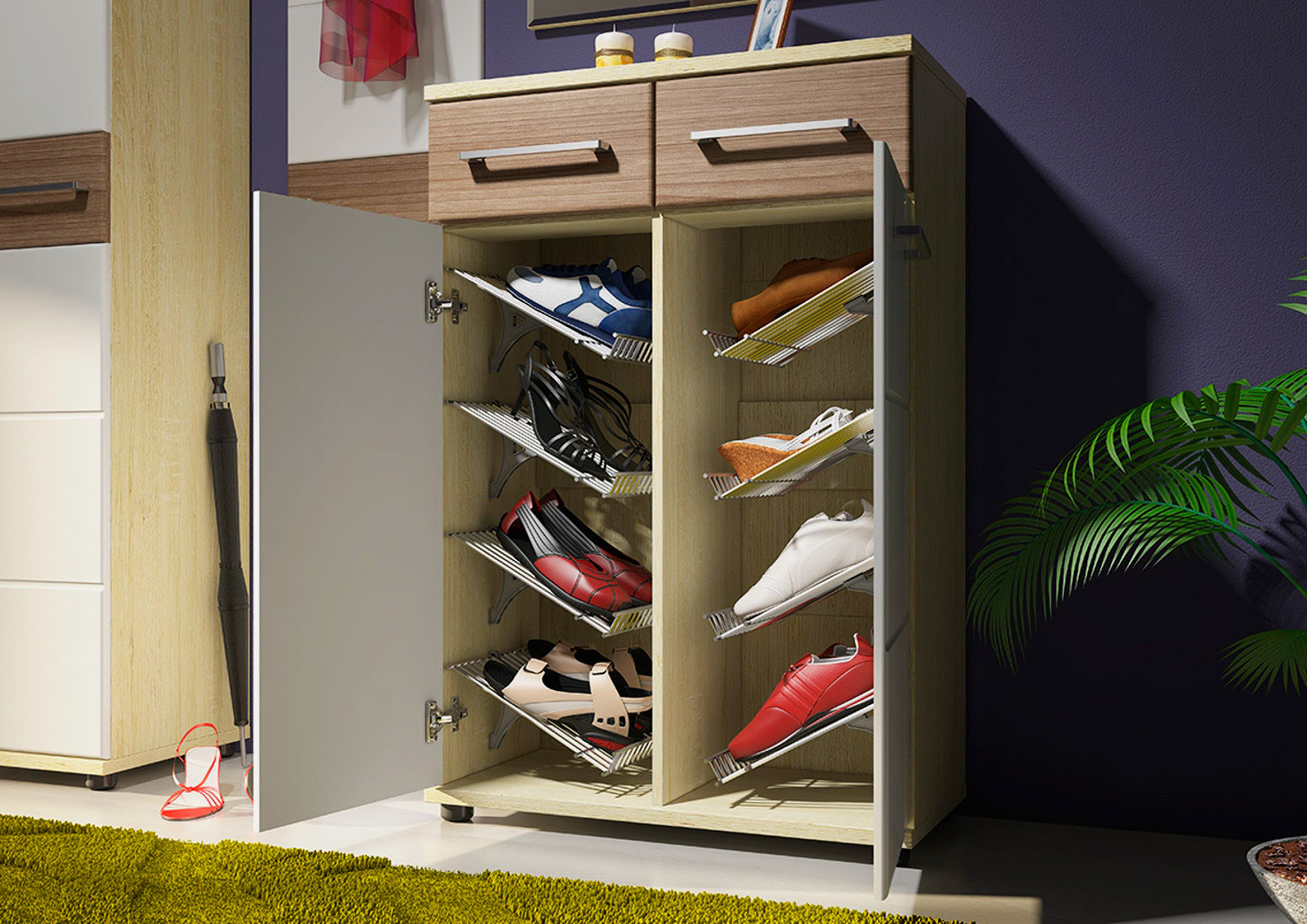 Чем разнообразнее дизайн обувного шкафа, тем больше в него можно положить. Из-за наличия летней, осенней, зимней и весенней обуви для мужчин, женщин и детей необходимо иметь разные места для хранения. Простые гардеробы будут менее функциональными, но более удобными, потому что каждая семья сама решает, какой вариант отдельно стоящего обувного шкафа она может и хочет себе позволить.