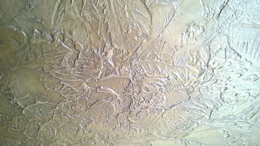 - Для данной техники используются марокканка или венецианка, которые хорошо ложатся, легко лопаются и дают красивые трещины. Штукатурку наносят слоем 2 мм. Здесь не требуется соблюдение ровности покрытия, наоборот, мазки накладываются с образованием невысоких гребешков по краям. Нанесение мазков разнонаправленное. При высыхании штукатурной массы первоначальные трещины появляются там, где оставлены гребешки. Эти трещины крупнее и глубже, чем трещинки, появляющиеся на ровных участках мазков. Декоративную штукатурку с трещинами нужно просушить, иначе на следующих этапах могут возникнуть дефекты.