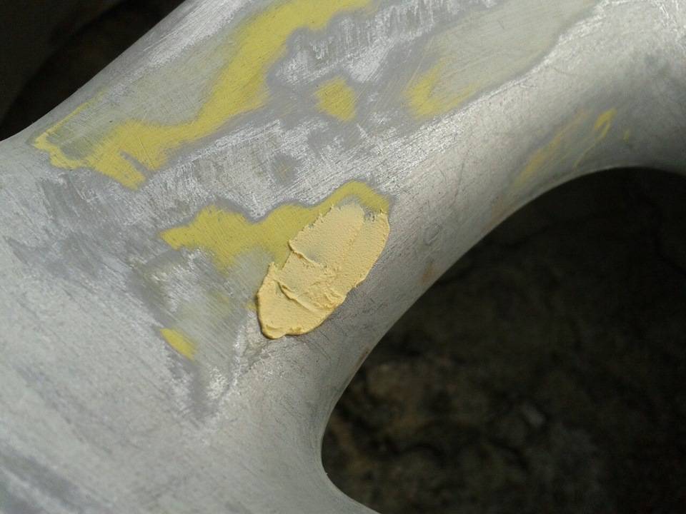 Порядок применения наждачной бумаги должен быть таким: № 200-400-600. После того как закончите ошкуривание диска, в случае необходимости, можете применить автомобильную финишную шпатлевку, дабы устранить мелкие дефекты имеющиеся на поверхности диска. Дефекты будут по-любому, так как я сомневаюсь, что вы собираетесь покрасить новый диск, соответственно мелкие «побочки» будут 100%.