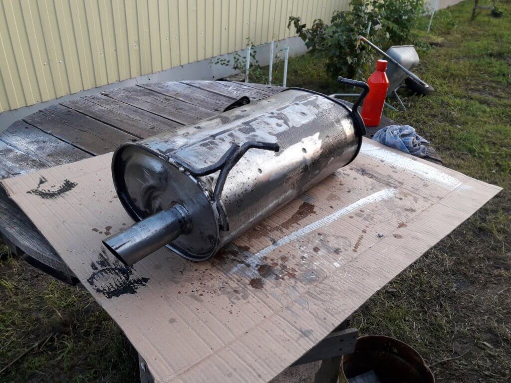 Теперь система подготовлена к последующей процедуре. Осталось определиться, чем покрасить глушитель автомобиля от коррозии своими руками.