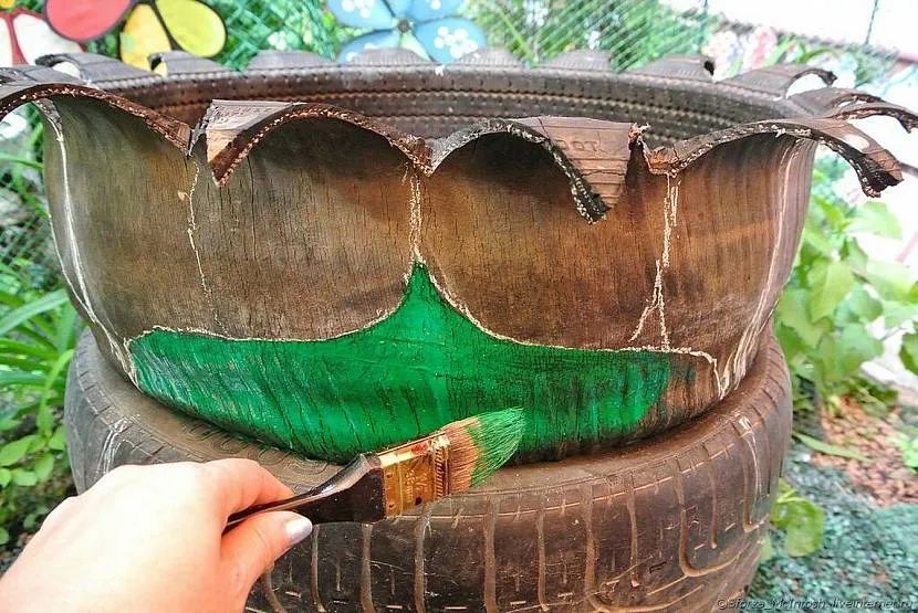 Краски применяют для работы с покрышками. Покрытие защищает шины от атмосферного и химического воздействия, убирает некрасивые потертости и дефекты. Эмаль превратит банальное оформление автомобильных деталей в яркий, оригинальный дизайн. При помощи окрашивания легко добавить настроения резиновым клумбам и садовым фигуркам.