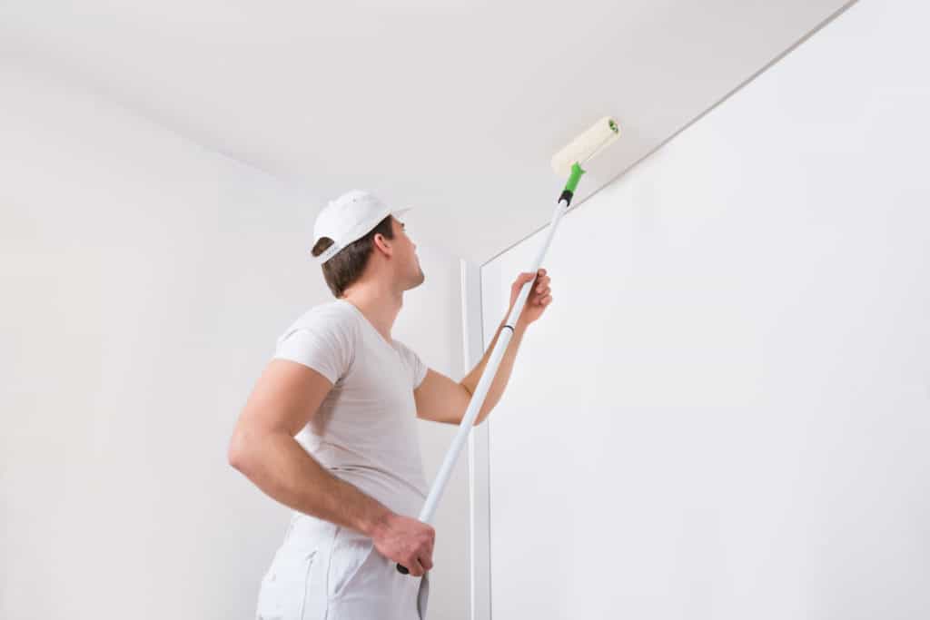 Начинать покраску следует со стыков угла, находящегося дальше всего от входа в комнату. Начинать покраску стыков необходимо кистью, прокрашивается полоса шириной не более 5 см. Затем поверхность прокатывается валиком.