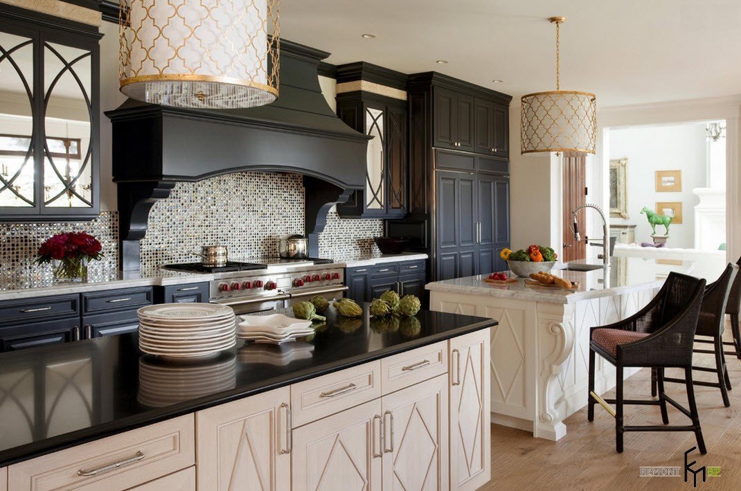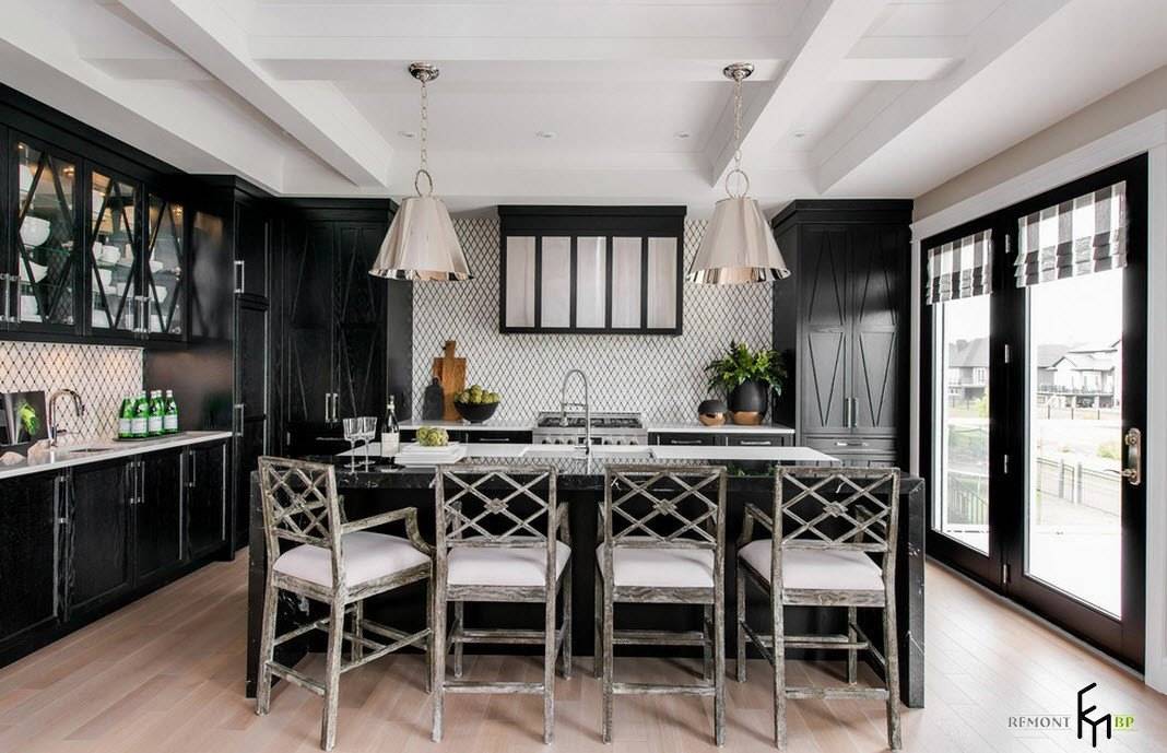 Пример классической кухни в черно-белом варианте.
