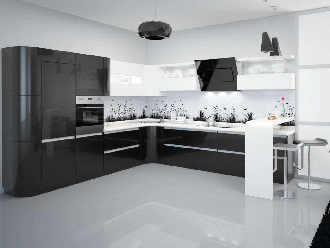 Роскошь и практичность глянца черно-белой кухни: фото удачно реализованных идей