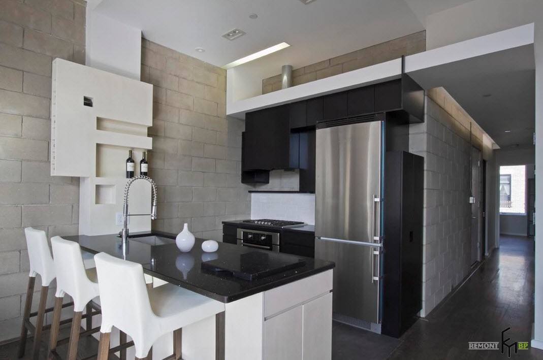 Минимализм в черно-белом интерьере кухни.