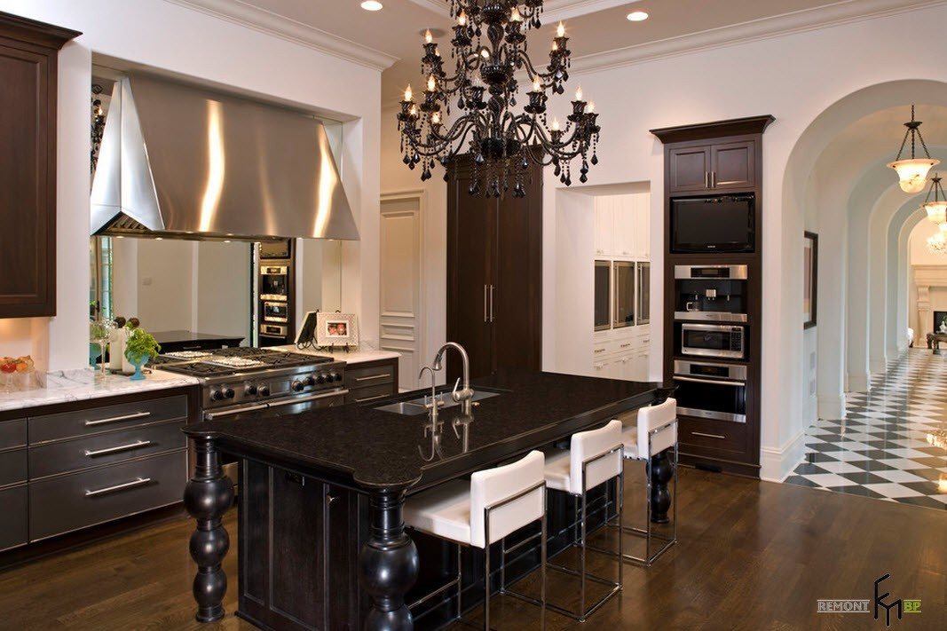 Черно-белая кухня в готическом стиле.