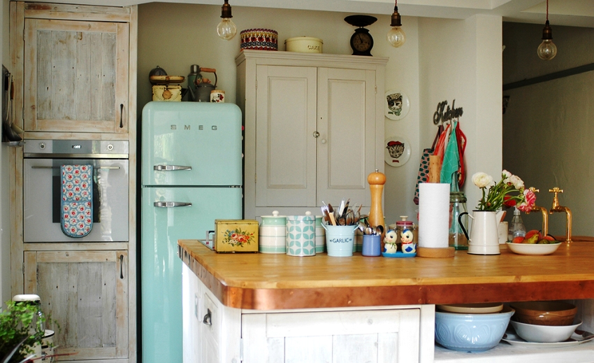 Современный прованс отличается от своего прародителя. Технологический прогресс и нотки архаичности — обязательные спутники, создающие бытовой комфорт. Техника встраивается лаконично и не мешает создавать прелесть деревенской атмосферы в городской квартире. Холодильник и духовка в ретро стиле станут изысканными деталями при оформлении кухни-прованс.