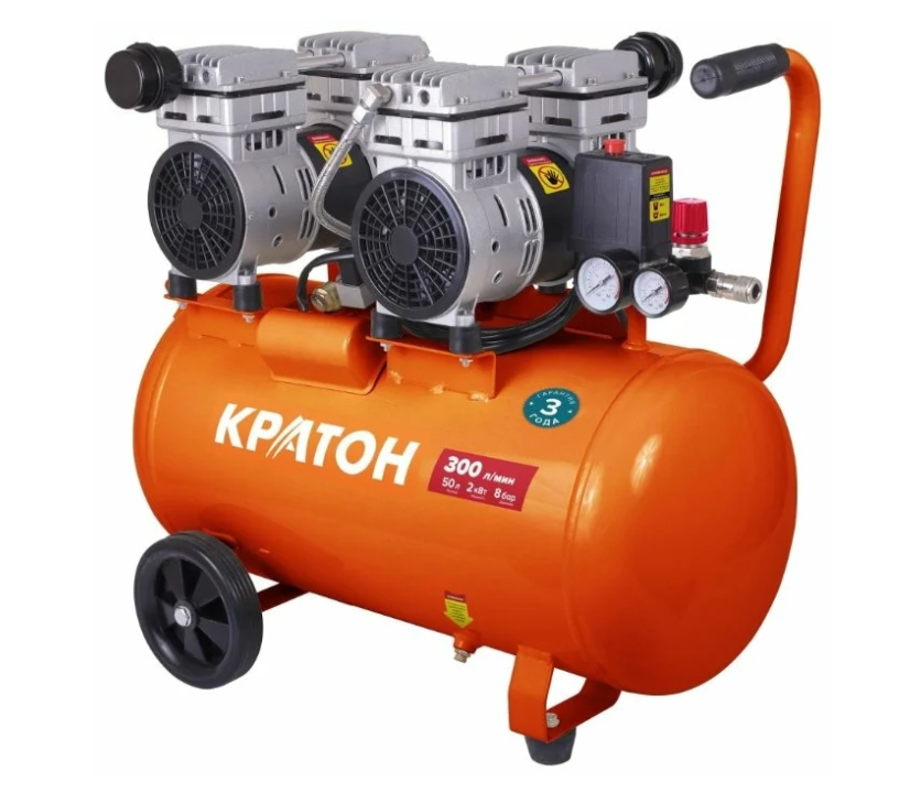 Компрессор Кратон с четырьмя цилиндрами и прямой передачей отличается минимальным уровнем шума и длительным сроком службы. Небольшого энергопотребления достаточно, чтобы агрегат бесперебойно выдавал сжатый воздух. Производительность 300 л/мин., чего хватит для домашнего использования, гаражных или дачных работ и даже использования в небольшой мастерской. К компрессору можно подключать любые пневматические инструменты – аэрографы, шлифовальные машины, скобозабиватели, гайковерты.