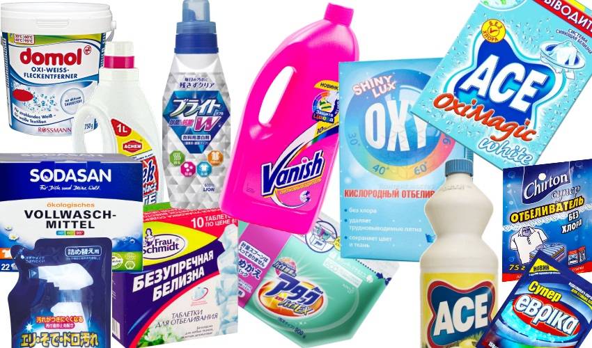 Выбирать приходится среди бытовой химии, в составе которой есть хлор, кислород, либо оптические отбеливатели.