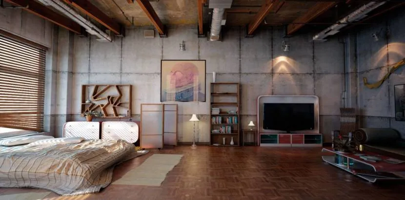 Идея этого дизайна принадлежит Энди Уорхолу. Именно создателю поп-арта впервые предложили использовать заброшенные фабрики, мастерские, склады и чердаки для жилья. За этим примером последовала американская богемная молодежь. Главная особенность стиля – в сочетании разных архитектурных композиций. Так, например, грубые текстуры (кирпичные стены, трубы, системы вентиляции) сочетаются с современными мотивами (зеркалами, металлом и мебелью с прямыми углами).
