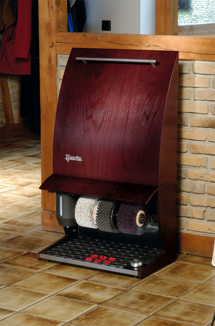 Бытовая модель. Машина для чистки обуви имеет небольшие размеры, что позволяет удобно размещать ее в квартире, частном доме или таунхаусе. Внутри встроены небольшие щеточки для очистки от грязи и для полировки, имеются небольшие углубления для хранения кремов. Максимальное количество человек, которые могут использовать машину для чистки обуви – 7. В некоторых моделях есть таймер отключения при использовании автоматического режима. Одно из главных отличий такой машины для чистки обуви– ценовая доступность и мощность.