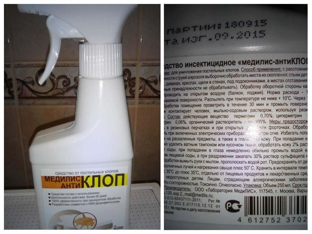 - При значительной численности клопов в литре воды разводится 5 мл средства Медилис ципер.
