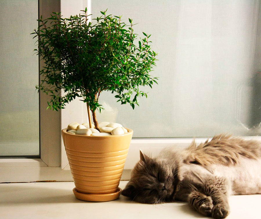 Если цветение для вас не слишком важно, то можно экспериментировать и прищипывать веточки. Комнатное растение мирт разрастается быстро, поэтому его внешний вид можно изменять каждый год