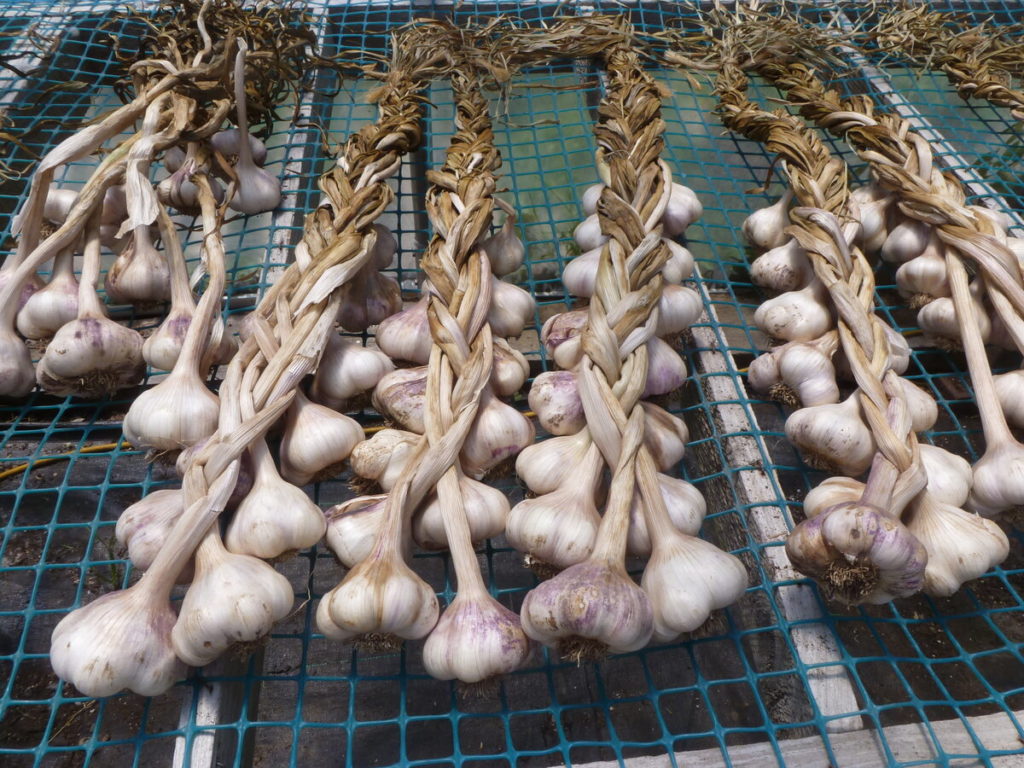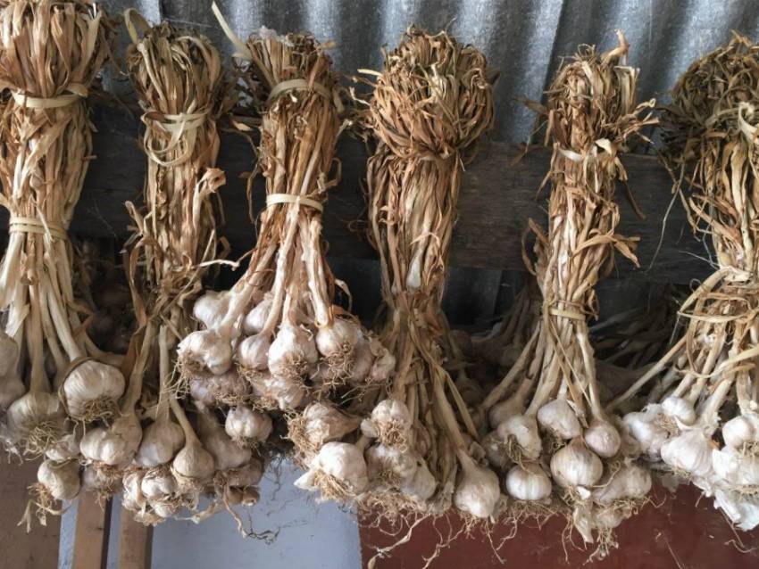 Сушка чеснока осуществляется в сарае, чердаке или под навесом в течении двенадцати-пятнадцати дней, разложив его в один-два слоя. Если погода позволяет, можно выносить урожай на свежий воздух.