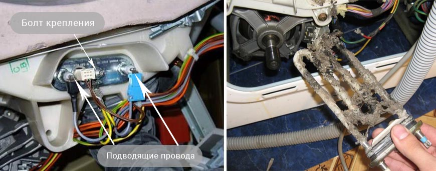 Иногда проводка крепится к корпусу, на который передаётся вибрация. Из-за вибрации проводка выходит из строя намного раньше, чем ломается ТЭН. Но решение достаточно простое – найти обрыв или нарушение контактов, и устранить проблему путём замены или запаивания проводов.