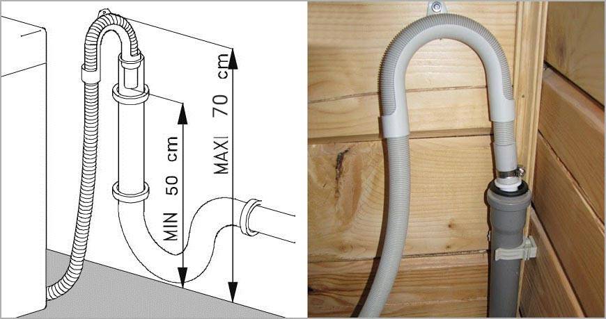 Правильный монтаж слива — одна из редких причин недостаточного нагрева воды в стиральной машине