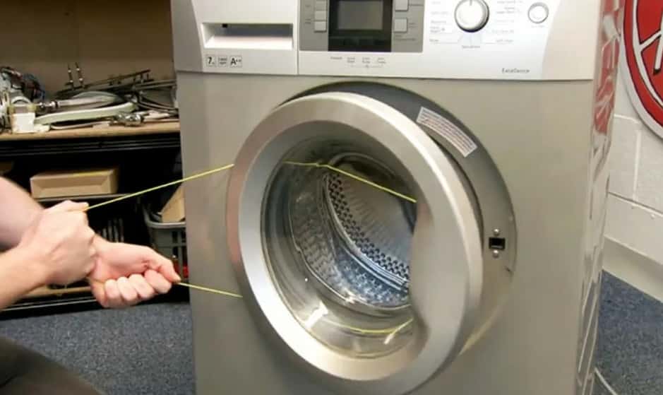 Самостоятельно открыть дверь в стиральной технике можно, пользуясь прочной, но не очень толстой верёвкой или шнурком. Помогая отверткой, необходимо просунуть веревку в щель люка по всей его окружности. Затем с силой дернуть за оба конца на себя. В процессе этой манипуляции защелка внутри замка отодвинется, и дверцу можно будет открыть.