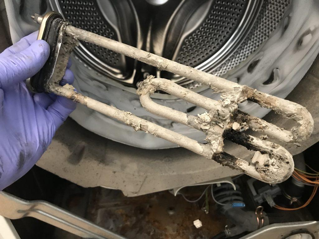 Но если, машинка слишком долго (от часа до двух) не издает никаких звуков, и не начинает сливать воду, придется разбираться что же могло сломаться. К примеру, мог выйти из стоя управляющий модуль или сгореть нагревательный элемент — ТЭН. Из-за этого вода не греется до нужной температуры, чтобы продолжить стирку. Или наоборот — жидкость перегревается и даже закипает.
