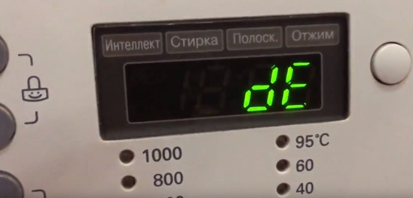 Часто проблемы возникают не с механикой, а с электроникой. Первый щелчок слышен отчетливо, а второй, чуть приглушенный, не раздается. Одновременно на экране появляется идентификатор ошибки «dE». Стирка не запускается – техника не откликается на нажатие стартовой клавиши. Причина такого поведения машинки в сломанном УБЛ.