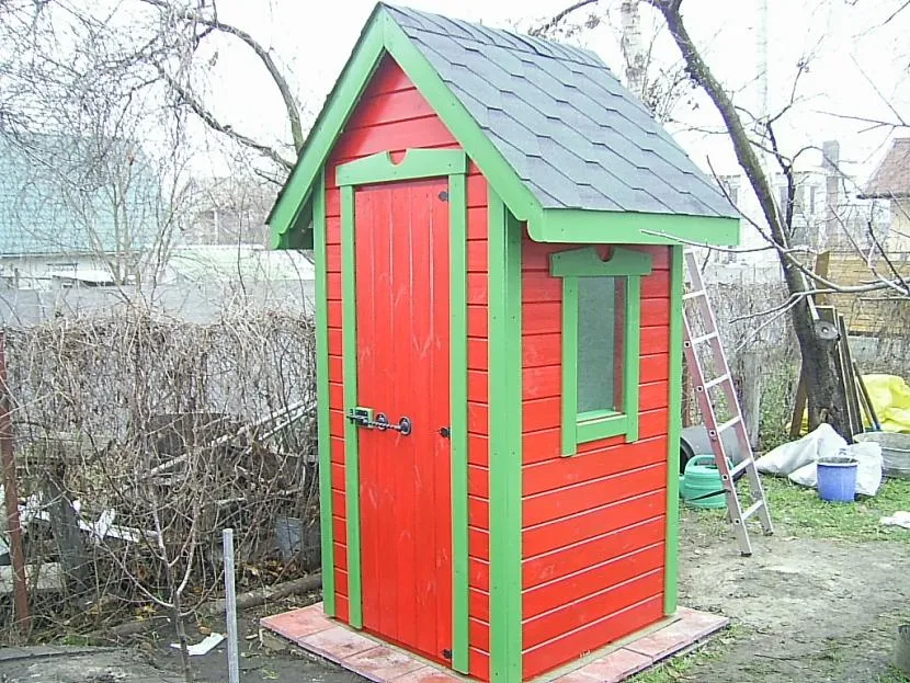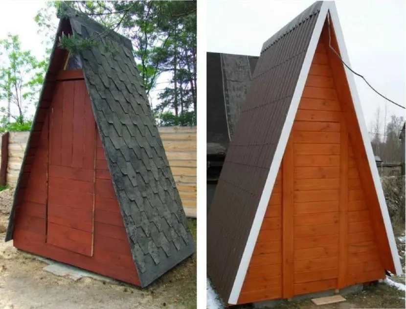 «Скворечник» – самый простой тип с односкатной крышей, для создания которого не потребуется много времени и сил. Представляет собой шаткую деревянную конструкцию, легко продуваемую ветром. Лучшее решение, если туалетом пользуются только в теплое время года.