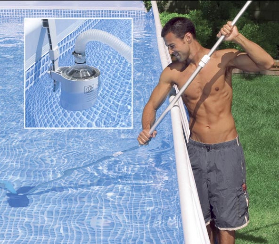 Водяной пылесос, эффективно очищающий дно и стенки дачного бассейна, нужно делать в такой последовательности: