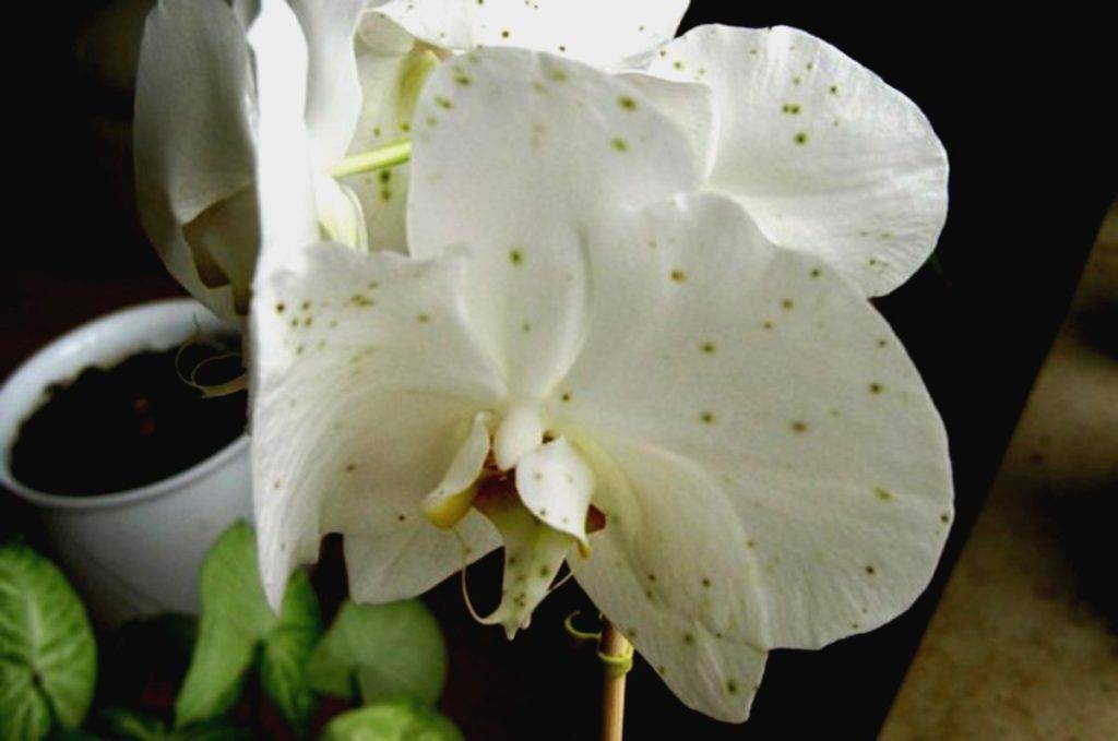 Иногда орхидею поражает крапивница: лист фаленопсиса покрывается крупными пятнами размером 2-3 см. Случается это из-за низкой температуры, высокой влажности и плохой вентиляции в помещении. Как только вы устраните эти проблемы, пятна появляться перестанут.