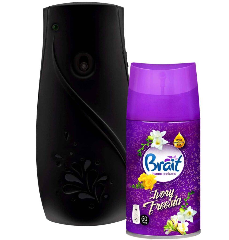 Электронный прибор для ароматизации воздуха для дома польской марки Brait Ivory Freesia стоимостью 600 р. укомплектован баллоном, что позволяет сэкономить не менее 150 р. Устройство предусматривает 3 режима интенсивности распыления, работает на 2 батарейках, модель оснащена датчиком света.