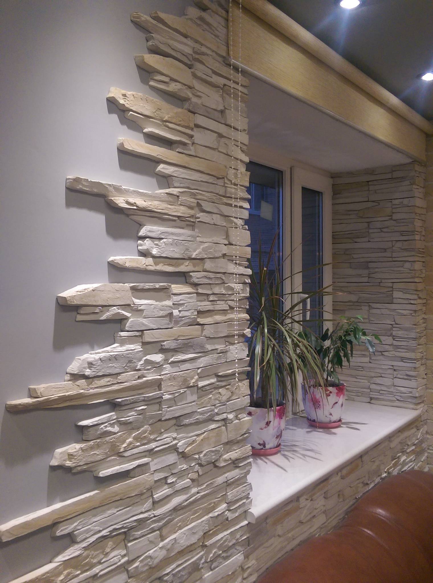 - великолепно будут смотреться оформленные имитацией натурального камня оконные и дверные проемы, а также видимые угловые зоны или центральная часть помещения.