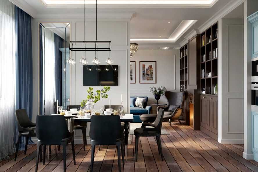 Разделение пространства на приватные зоны придает обстановке более элегантный, стильный и в то же время уютный вид.
