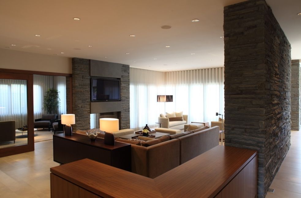 Плюс такой конструкции камина – внутри перегородки — в возможности наблюдения за пламенем из любой части комнаты. В то же время, конструкции наделены недостатком. Ведь для установки камина в высокоэтажном доме необходимо получить соответствующие разрешительные документы.