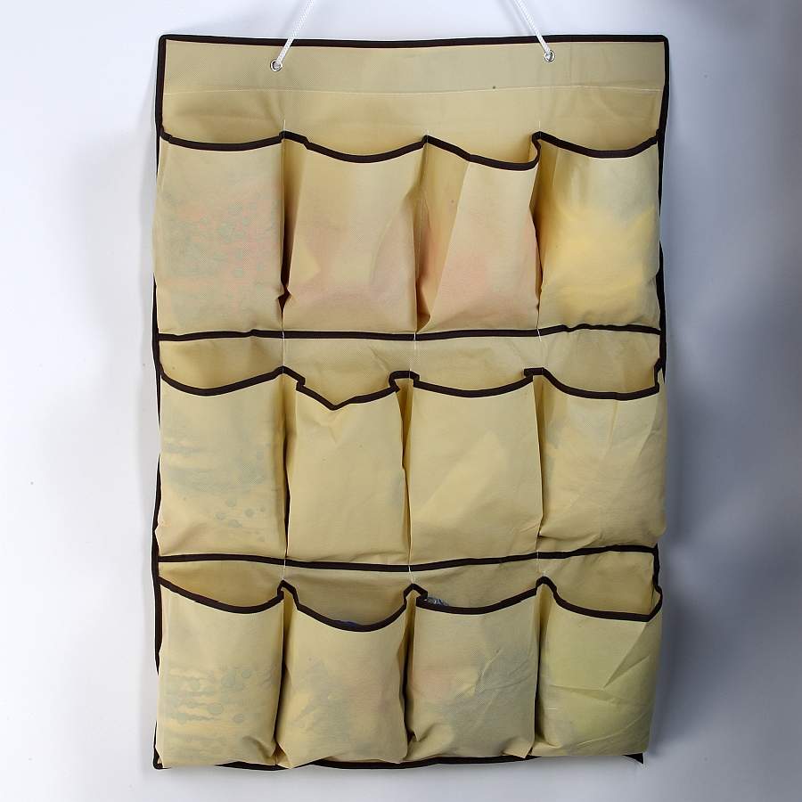 В подвесном кофре с секциями можно хранить скрученные валиком футболки, джемпера, полотенца, а в кофре с карманами можно разместить множество тапочек, туфлей.