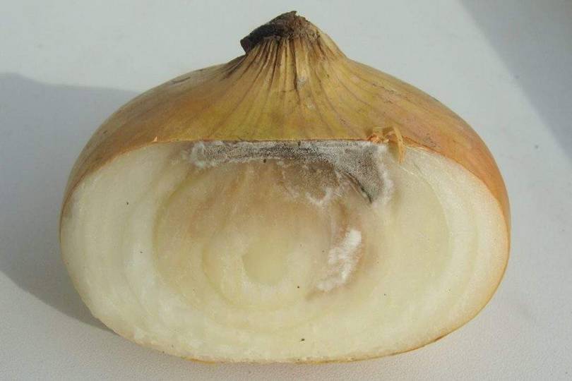 Чтобы продукт сгнил, достаточно избыточного дождевания или влажного лета. К моменту сбора урожая заболевание проникает в пазухи зелени и в шейку. Постепенно луковая инфекция перебирается в сочные слои. Болезнь увеличивает температуру в корнеплодах, в результате чего продукция полностью пропадает.