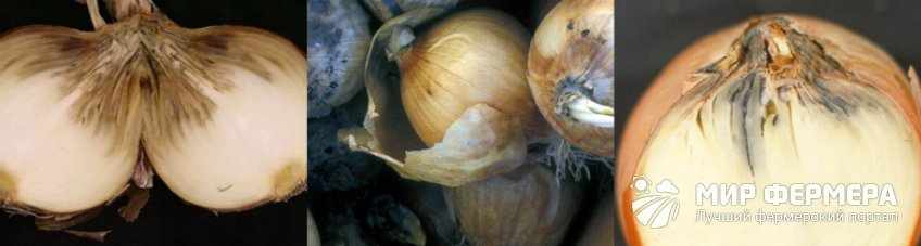 Чтобы продукт сгнил, достаточно избыточного дождевания или влажного лета. К моменту сбора урожая заболевание проникает в пазухи зелени и в шейку. Постепенно луковая инфекция перебирается в сочные слои. Болезнь увеличивает температуру в корнеплодах, в результате чего продукция полностью пропадает.